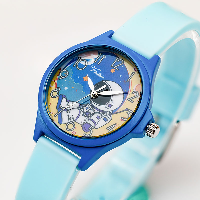 Introducing the Kids Watch Cool Astronaut Space Dial, a must-have adventure accessory for young explorers. This timepiece features a striking light blue silicone strap that is both comfortable and durable, perfect for everyday wear. The dial showcases a cool astronaut space design that is sure to capture the imagination of any aspiring space traveler.