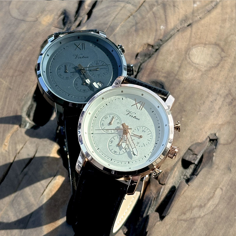 Introducing the Virtue Multifunction Calendar Stainless Steel Leather Band Business Watch - a sophisticated blend of style and functionality. Crafted with a sleek stainless steel case and a luxurious leather band, this timepiece exudes elegance and class. The water-resistant 3ATM feature ensures durability, making it suitable for everyday wear. Equipped with a precise quartz movement, this watch not only keeps you on time but also adds a touch of sophistication to your business attire. Elevate your look with the Virtue Business Watch - a timeless piece for the modern professional.